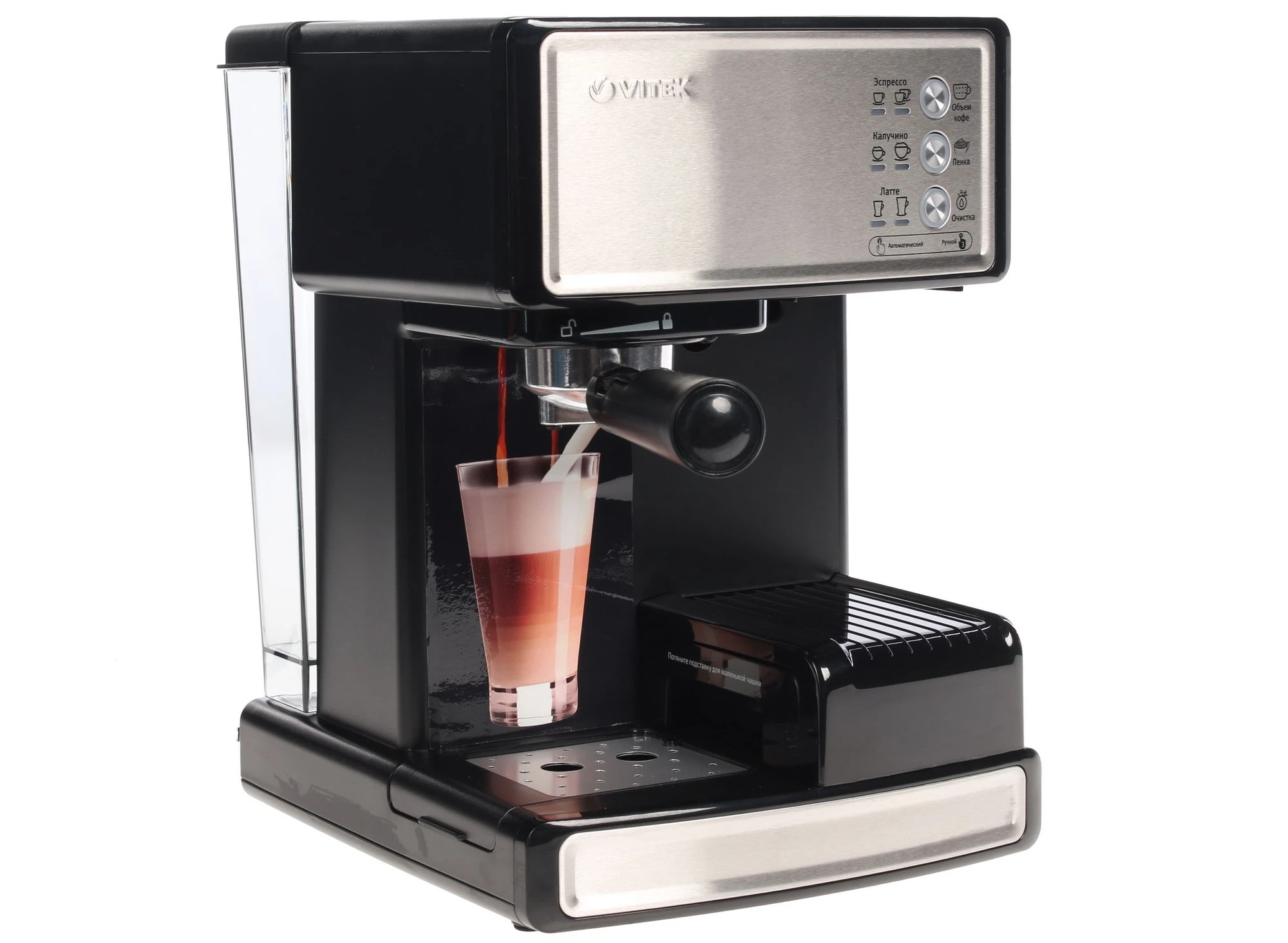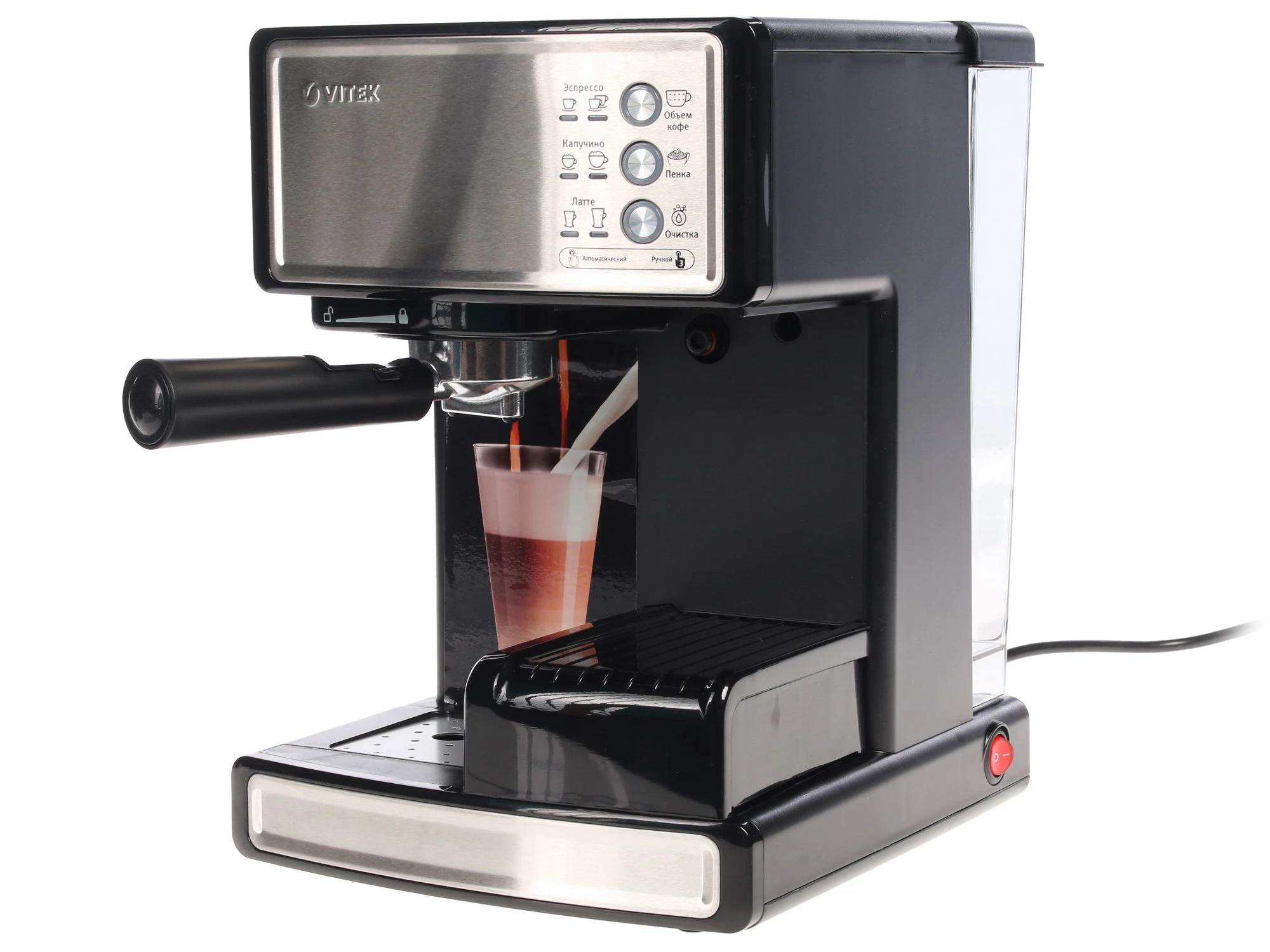 Для тех, кто жаждет проявить себя в качестве бариста, создана кофеварка Vitek VT-1514 BK. Стильный, продуманный дизайн станет исключительной изюминкой в интерьере. В данной модели есть опция выбора порции кофе. С ее помощью можно приготовить капучино, латте или лунго, а также простой эспрессо. Кофеварка Vitek VT-1514 BK способна подарить огромное удовольствие от процесса приготовления, и конечно от поглощения ароматного напитка. Систему очищать очень легко, к тому же в модели предусмотрено автовыключение, что обезопасит технику от перегрева и, как следствие, поломки.