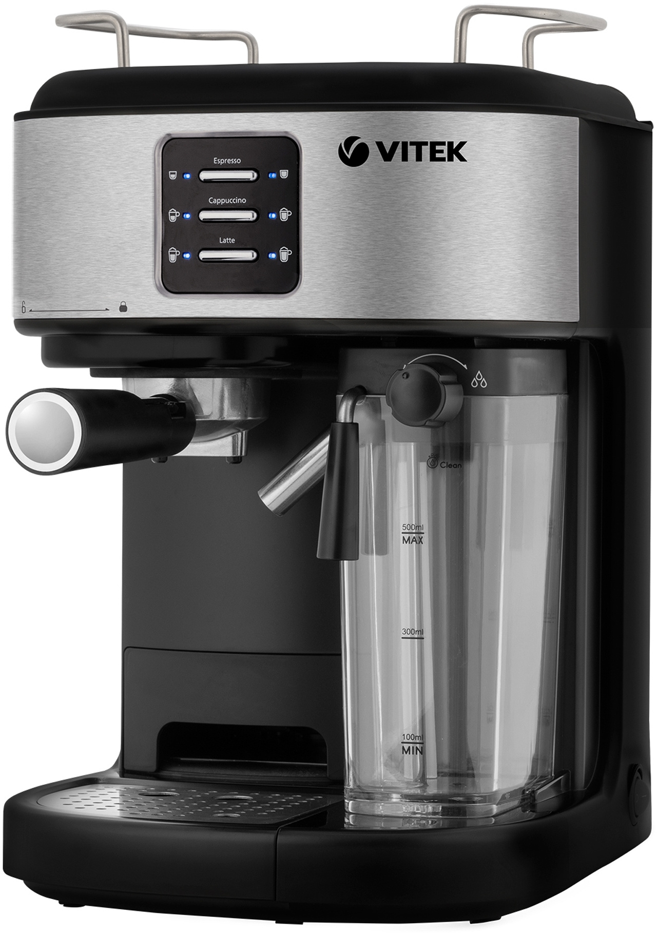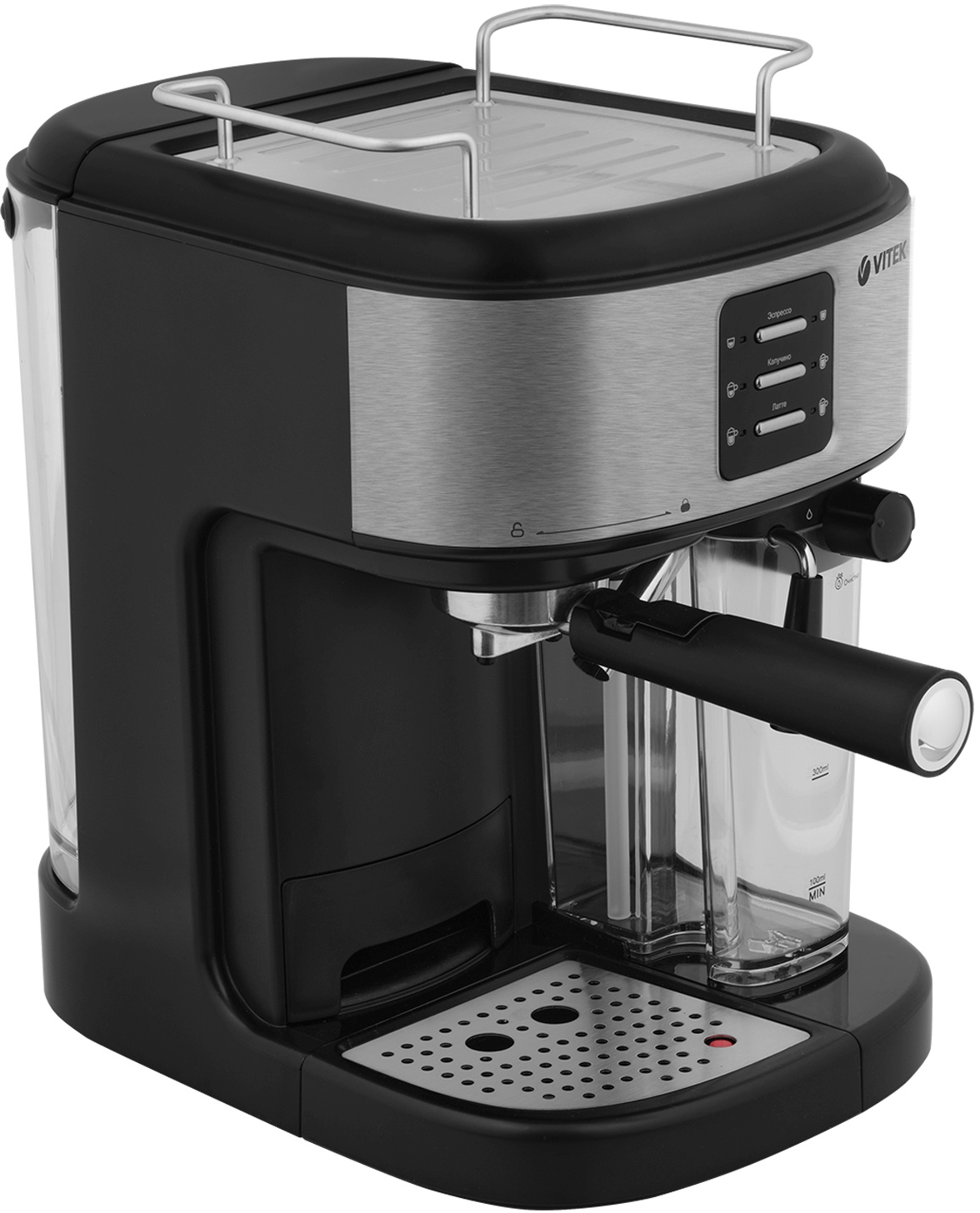 Чтобы каждое утро было действительно добрым, приобретите кофеварку VITEK VT-8489 с максимальной мощностью 1250 Вт (номинальная — 1050–1250 Вт). Устройство оборудовано итальянской помпой фирмы ULKA, обеспечивающей давление в 15 бар, благодаря чему напитки получаются необыкновенно насыщенными. Кроме того, прибор оснащен термоблоком, способствующим улучшению вкусовых качеств кофе, ускорению процесса приготовления и уменьшению затрат на электроэнергию. Кофеварка имеет уникальный фильтр, который позволяет получать идеальный эспрессо с густой ароматной пенкой. Этот напиток, а также капучино и латте готовятся нажатием на одну кнопку. Нажатием на другую вы можете взбить пышную молочную пену (емкость съемного резервуара для молока — 500 мл). Объем напитка выбирайте по желанию, используя специальные кнопки (для маленьких чашек в приборе имеется небольшая выдвижная платформа). Хотите подогреть посуду перед приготовлением кофе? Поместите чашки на платформу, расположенную сверху. Для особого комфорта в использовании кофеварка оборудована съемным резервуаром для воды емкостью 1,5 л и съемным поддоном для капель (в комплект также входит удобная мерная ложечка для молотого кофе). О включении прибора вас оповестит специальный индикатор, а в случае перегрева он отключится автоматически.