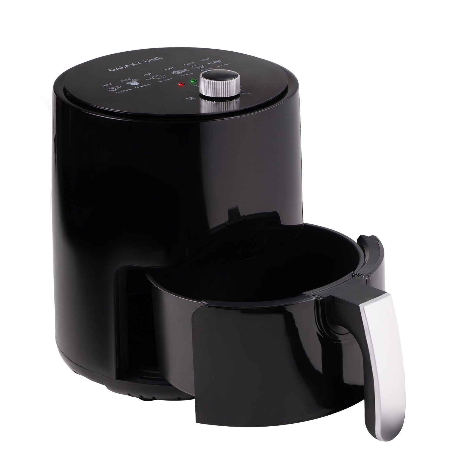 Аэрогриль Galaxy Line GL2530 – это простой способ готовить любимые блюда быстрее, полезнее и без лишних хлопот. Мощность 1400 Вт обеспечивает быстрый нагрев, а система циркуляции горячего воздуха равномерно прожаривает продукты, создавая аппетитную хрустящую корочку. Антипригарная чаша и решётка не дают пище пригорать, упрощая уход, а таймер на 30 минут позволяет не стоять у плиты – техника всё сделает сама. Вдохновение для новых гастрономических экспериментов найдётся в книге рецептов, которая идёт в комплекте.