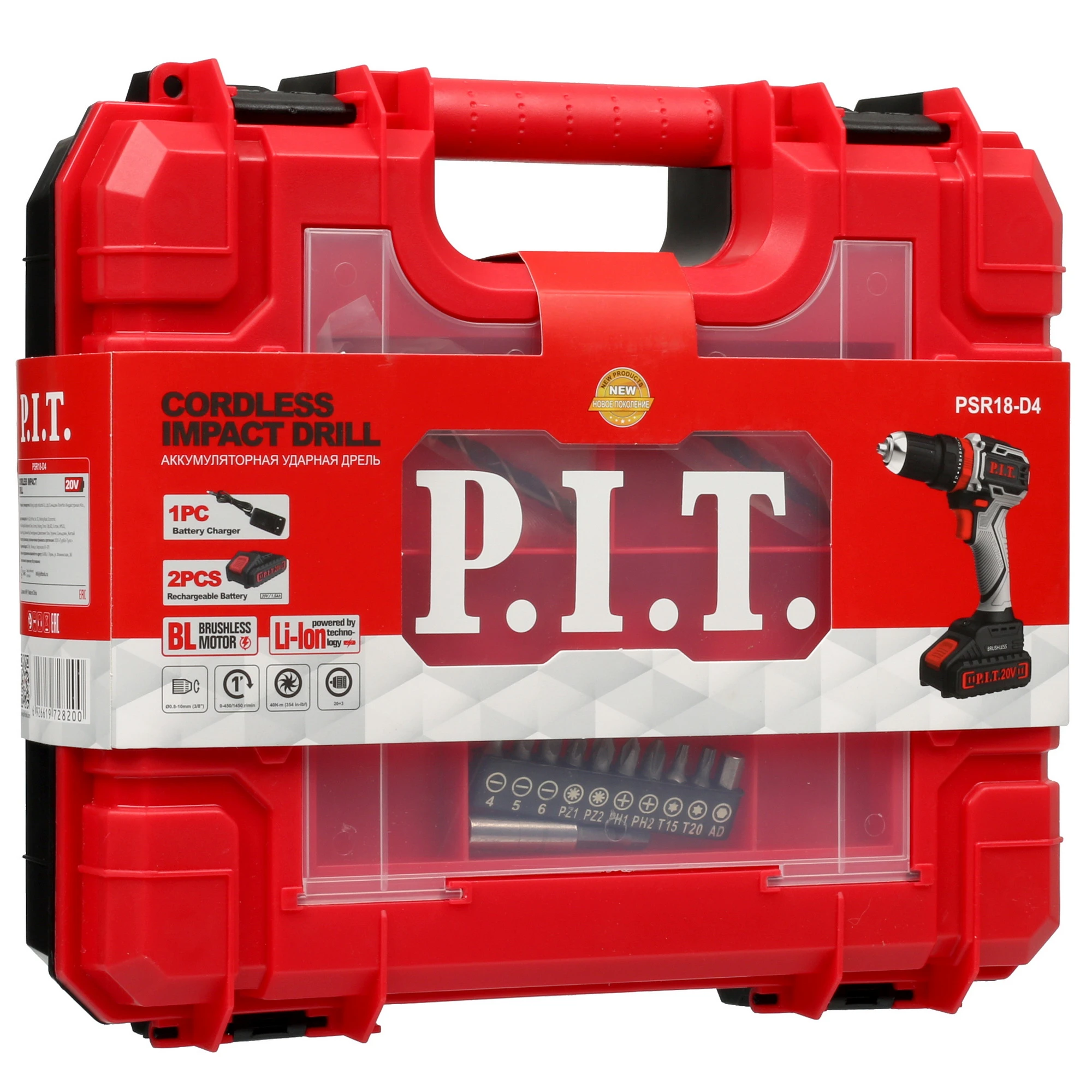 Дрель-шуруповерт аккумуляторная P.I.T PSR 18-D4 бесщеточная