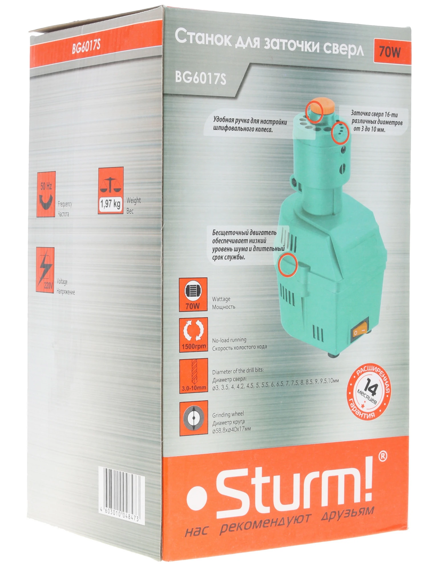 Точильный станок STURM! BG6017S оборудован одним точильным кругом с наружным диаметром 58.8 мм и предназначен для заточки сверл по металлу и дереву. Он быстро возвращает остроту металлическим сверлам, утратившим в процессе эксплуатации свою эффективность. Этот стационарный инструмент с мощностью электродвигателя 70 Вт будет полезен в столярной, слесарной, мебельной мастерской или на производстве. С помощью точильного станка STURM! BG6017S можно обслуживать сверла диаметром 3-10 мм. Оснастка, нуждающаяся в заточке, вставляется в этой модели в вертикальный канал, в котором вращается абразивный круг. Точильный круг этого эффективного в работе станка прикрыт защитным кожухом, который служит защитой от разлета искр, частиц абразива.