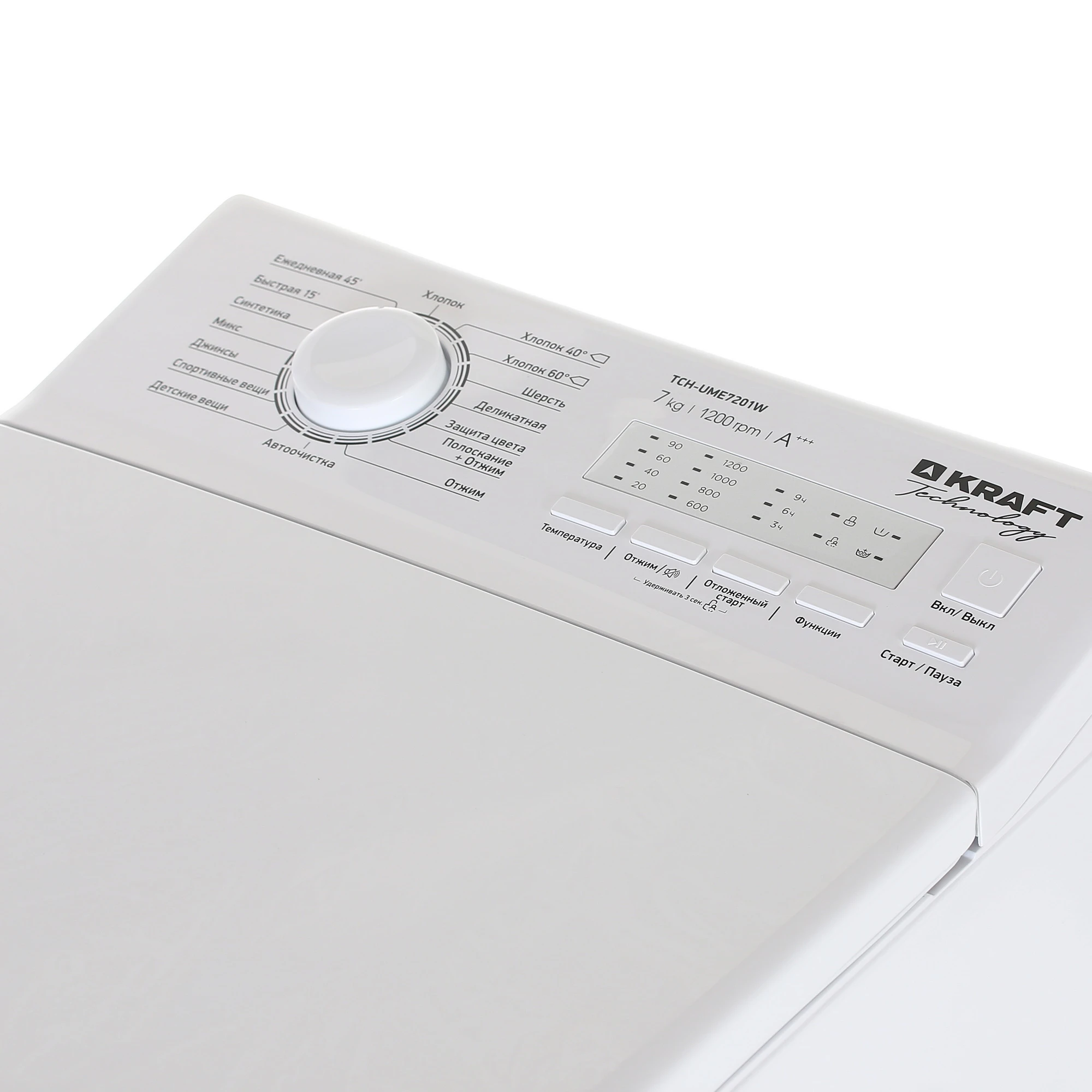 Стиральная машина Kraft TCH-UME7201W с вертикальной загрузкой обеспечивает качественные результаты стирки в сочетании с экономией потребления воды и электроэнергии. Данная модель предусматривает возможность загрузки до 7 кг белья за один цикл и оснащена 16 программами для различных задач. Максимальная скорость отжима составляет 1200 об/мин. Таймер позволяет выбрать время стирки. Звуковой сигнал информирует об окончании процесса стирки. Расположенная на верхней части корпуса панель с кнопками и поворотными переключателями обеспечивает простое управление стиральной машиной Kraft TCH-UME7201W. А технологии защиты от скачков напряжения и протечек гарантируют максимально безопасную эксплуатацию.